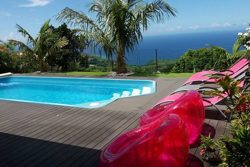 Vous disposerez de deux terrasses couvertes avec vue mer, une devant la maison avec un salon de jardin, une autre dotée d'un coin repas avec un barbecue, d'un terrain de pétanque, d'une table de ping-pong, ainsi que de deux places de parking. Piscine privée sécurisée en accès libre, chauffée durant l'hiver austral, avec transats. Le tarif indiqué comprend les différentes charges (climatisation, linge de maison fourni (hormis les serviettes de plage), …).