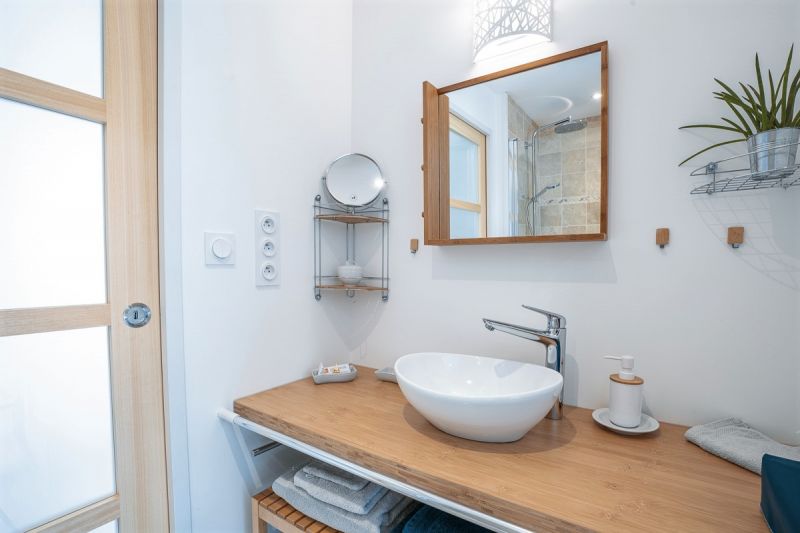 Mezzanine au dessus de la chambre comprenant 2 lits de 90. Grande douche. Linge de toilette, savon fourni. Wc séparés. Wifi. Terrasse et mobiler de jardin. Entrée indépendante. Stationnement dans la propriété. Maison Non fumeur. Animaux non acceptés. Petit déjeuner copieux et bio.