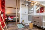 Le grand salon/séjour donne sur la terrasse et la piscine (hors sol 3x7m - non chauffée), à disposition de mai à fin septembre environ. Les 4 chambres d'hôtes (dont 1 familiale et 1 avec kitchenette), situées au 1er et 2ème étage, portent des noms d'oiseaux du secteur et disposent chacune d'une identité propre avec une décoration personnalisée par les propriétaires des lieux. Elles disposent de sanitaires privatifs, sauf suite familiale à partager.