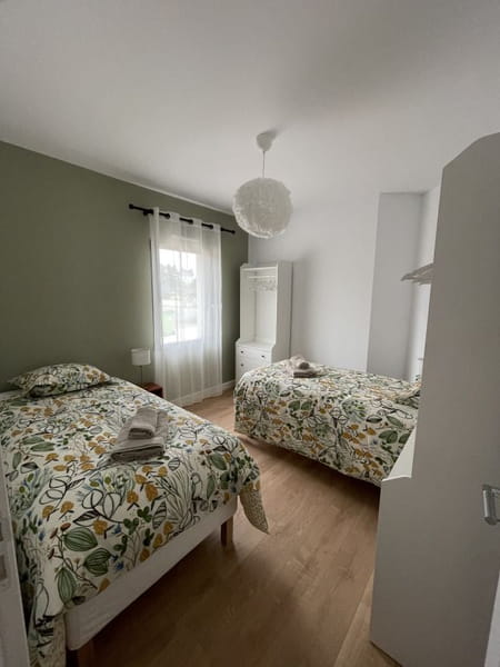 Le Gîte du Chêne de Ménac est une charmante maison moderne indépendante (2022) située au calme, dans une ambiance champêtre, au cœur du Parc Régional de Brière, à 10 km des plages, 20 km de Guérande et 26 km de la Baule. Terrasse et jardin de 1400 m² orientés sud-ouest, avec superbe vue sur les marais de Brière et le chêne tricentenaire. Plain-pied 120m² : lumineux salon/séjour avec cuisine aménagée ouverte, 3 chambres (2 lits 90x200 jumelables par chambre), salle d'eau/wc, wc indépendants.