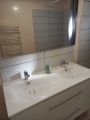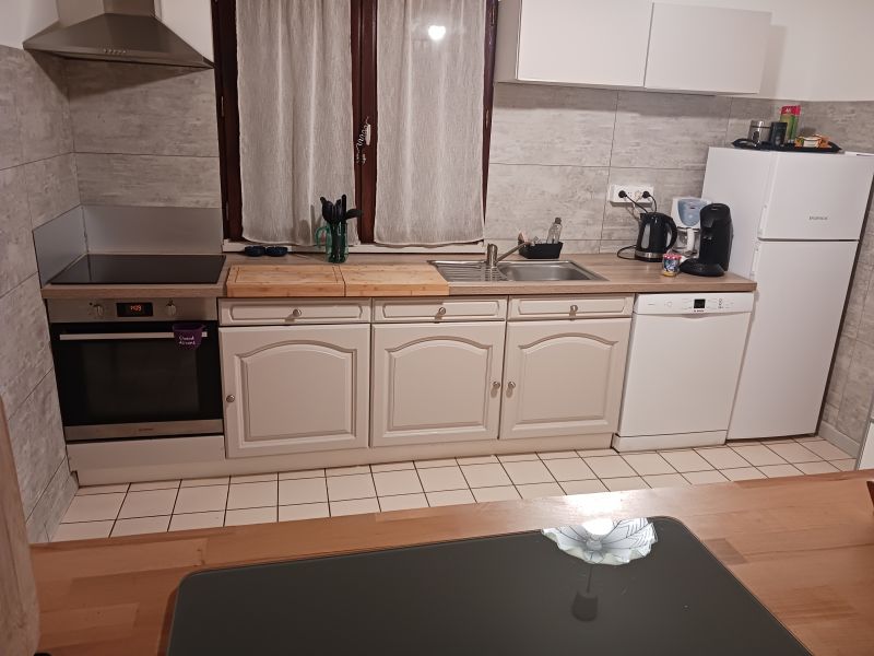 Composé au RDC d'une grande pièce à vivre donnant sur une cuisine semi-ouverte. Cuisine équipée de plaque vitrocéramique, four, frigo/congélateur, lave vaisselle et lave linge,...