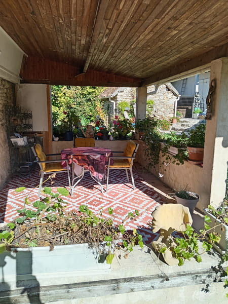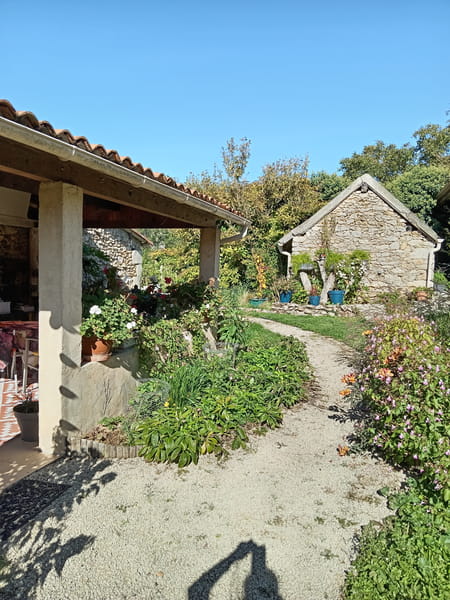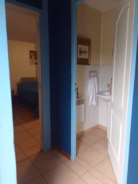 En campagne, chambre indépendante, salle de bains, terrasse couverte. Chauffage électrique. Mise à disposition d'une petite cuisine équipée dans annexe.