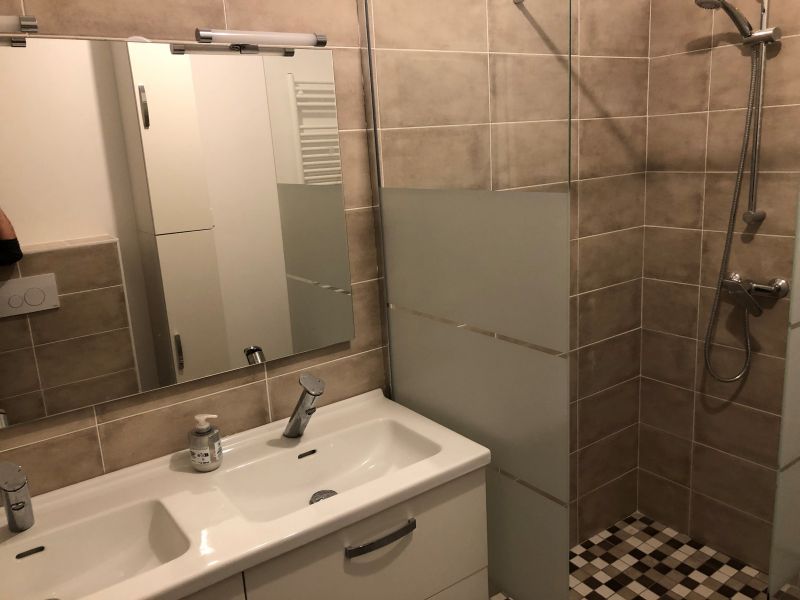Grande pièce de vie 45m² avec cuisine ouverte. Cuisine équipée (plaque induction, four, four micro-onde, réfrigérateur-congélateur). WC indépendant PMR. Salle de bain avec douche à l’italienne, double vasque + wc.