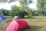 Terrasses et aire de camping pour 20 personnes - Sanitaires extérieurs.