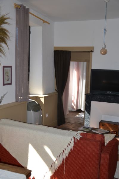 Petit salon avec canapé-lit, télévision, coin repas, cuisine équipée : plaques gaz 2 becs, four, mivro-ondes, LV, bouilloire, cafetière, grille-pain, grand frigidaire/congélateur.