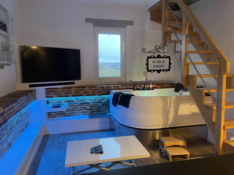 Laissez-vous tenter par la vie de château pour une nuit ou un week-end...A 10mn de Toulouse, c'est un lieu unique qui vous est proposé, une suite de caractère mêlant l'ancien et la modernité avec son Jacuzzi le tout dans un cadre verdoyant et calme à proximité du Canal du Midi. Vous aurez le privilège de séjourner dans une suite en duplex de caractère de 40m² mêlant charme de l’ancien, confort moderne et équipements haut de gamme avec entre autres son Jacuzzi double équipé de 40 jets individuels réglables, chromothérapie, musique, vidéo, chauffage et désinfection à l’ozone.