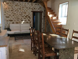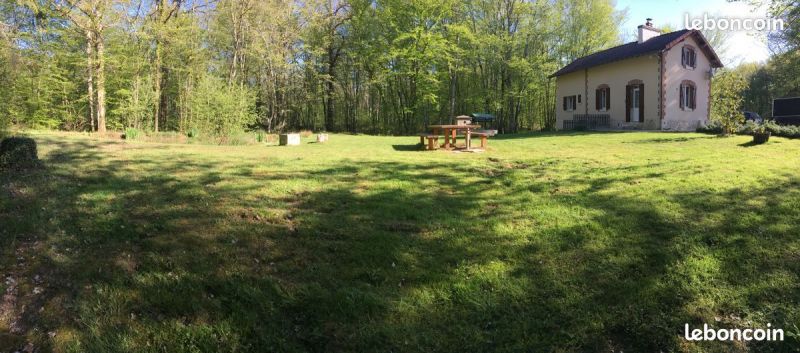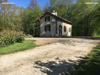 Ancienne maison de garde-barrière, rénovée dans le respect du style, pierres et poutres apparentes, parquet et escalier d'origine, de 100 m² habitables, accueil couchage pour 10 personnes, située en plein bois, pas de voisins, accès par le bois par chemin en calcaire de 500 m, sur un terrain de 5000 m², avec une belle mare bien empoissonnée (carpes, gardons), possibilité de pêcher, animaux acceptés. Endroit idéal pour se retrouver entre amis pour faire la fête autour d'un barbecue, ou tout simplement en famille pour visiter de nombreux sites à quelques kilomètres seulement.