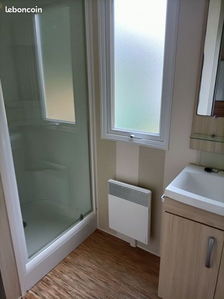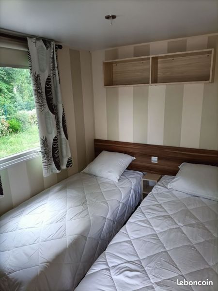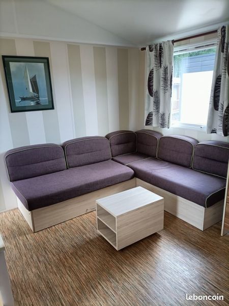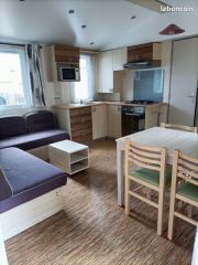 Ce logement de 32 mètres carrés est idéal pour un séjour touristique. Il dispose d'un jardin et peut accueillir jusqu'à 5 personnes. On y sent que le calme y règne ! Le logement : Orienté Sud, le mobil-home comprend : - une chambre avec un lit double et placard ; - une chambre avec deux lits simples et placard ; - une salle de douche fonctionnelle ; - un WC séparé ; - une cuisine entièrement équipée ; - un espace repas avec table et chaises ; - un salon avec un canapé convertible. Vous apprécierez particulièrement sa terrasse de 18 m² avec salon de jardin, grande table + chaises et parasol et son absence de vis-à-vis.