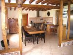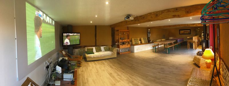 RDC : Salon avec deux canapés convertibles + TV. Double séjour avec cheminée 1 table 12 personnes + 1 table 8 personnes. Cuisine équipée : four, cuisinière 4 feux, micro-onde, lave-vaisselle, 2 réfrigérateurs, congélateur, bouilloire, cafetière, grille-pain. Entrée / Salle d'eau avec lave-linge / WC indépendant.