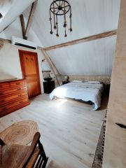 Cette maison représente tout le charme de l'ancien et de la campagne. Le logement est composé d'une grande pièce à vie d'environs 50 m², comprenant le salon, la salle à manger et une cuisine ouverte toute équipée. Trois chambres : Une grande chambre avec ancienne cheminée, bibliothèque et bureau en mezzanine. Une autre chambre très chaleureuse au rez de chaussée. Une troisième chambre cozy d'une personne. Dans le jardin : * une pièce privative en pierre apparentes avec jacuzzi (3 à 4 personnes) et au sauna traditionnel (2 personnes) et une très belle douche à l'italienne en travertin. * une agréable terrasse avec table et chaises (6p), Tout est fait pour vous détendre et passez un agréable séjour.