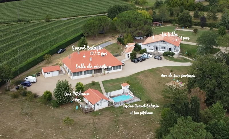 Notre domaine est composé de 3 gîtes, modulables selon vos besoins, ainsi que d'une grande salle de réunion. Idéal pour tous vos séjours professionnels, séminaires, stages, formations etc... Le grand Balazin (avec salle de réunion) : 4 chambres, 8 lits. La Villa : 6 chambres, 11 lits. Lou pitchoun : 2 chambres, 3 lits.