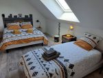 • à l’étage, vous trouverez 3 chambres (2 double, 1 quadruple), 2 salles d’eau et 1 wc. Chaque chambre est équipée de la climatisation et d’une TV.