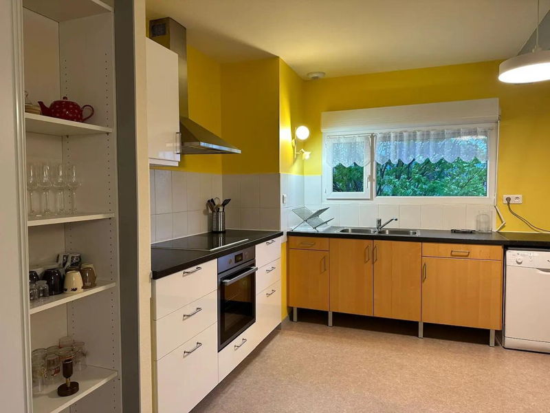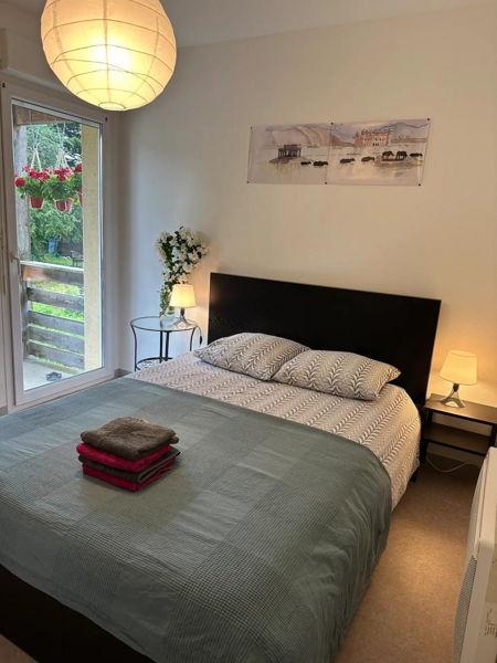 Cet appartement aménagé au 1er étage d'une maison se compose d'une pièce de vie avec cuisine toute équipée, coin salon aménagé avec 2 canapés (dont un est convertible) et TV, d'une chambre avec 1 lit double (140*200), d'une salle de bains avec baignoire-douche et d'un wc indépendant. Pour votre plus grand confort, les lits seront faits à votre arrivée, les serviettes sont fournies et le ménage est inclus. Le logement est équipé de la fibre et du wifi.