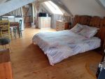 La Maison, gîte de 2 chambres (1 chambre avec un lit double et une autre avec 3 lits simples ou un lit double et un lit simple), deux salles de bain, wc, une cuisine tout équipée et un grand salon où il est possible de faire des repas avec 30 convives.