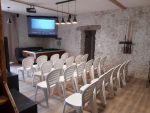 La Grange, grand gîte avec 2 dortoirs de 6 couchages individuels chacun, 2 wc, 3 douches et 3 lavabos, une grande cuisine tout équipée. De plus elle contient une grande pièce de vie modulable soit en une pièce de réunion avec rétroprojecteurs, possibilité de mettre 25 chaises ou tables rondes d'environ 12 personnes, soit en une pièce conviviale avec billard, baby-foot, flipper, et autres jeux.