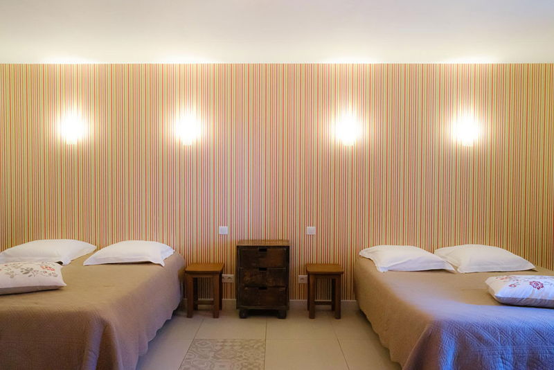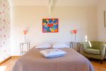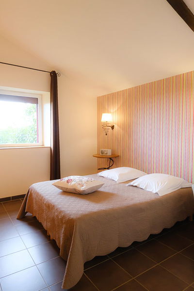 Gîte "Le Chai" ***** : 1 chambre quadruple avec deux lits doubles (4 personnes) au rez-de-chaussée jouxtant la salle de réception de 90 m². Cette salle vous permettra aisément de vos regrouper lors de vos réunions, elle est équipée d'un mur blanc pour le projection de vos power point.