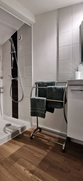 Type de logement : Duplex spacieux et lumineux. Capacité : 2 personnes. A l’étage : 1chambre mansardée avec un lit 160 X 200, salle de douche attenante. Pièce de vie : salon avec télévision et accès Wifi. Cuisine entièrement équipée (four, micro-ondes, lave-vaisselle, réfrigérateur/congélateur, Nespresso, cafetière filtre, grille-pain, etc.).