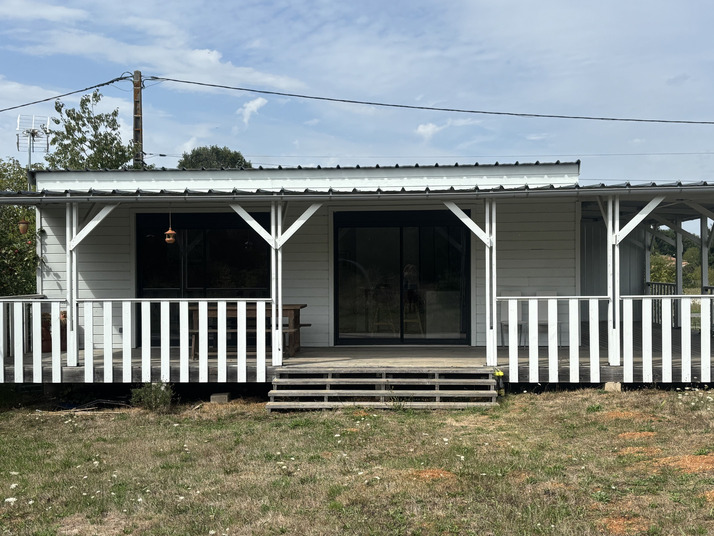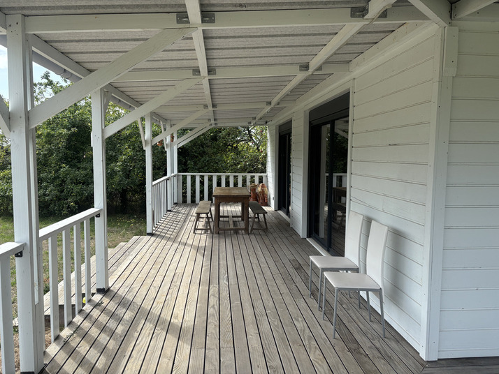 Maison en ossature bois de 60m² plus une terrasse de 60m², entièrement équipée. Se situe dans un jardin au cœur d'un petit village à 25 minutes d'Angoulême d'un côté et de l'autre la Dordogne.