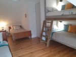 Sont déjà accessibles : une pièce de vie (salon, séjour, cuisine), une chambre avec une capacité de 2 personnes et une seconde chambre avec 4 lits dont 2 lits superposés, une salle d'eau, wc. Stationnement facile devant la maison.