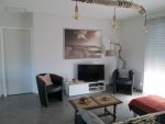 Salle à manger avec grande table et 6 chaises. Salon avec canapé + deux fauteuils. Au cellier, lave-linge et congélateur, fer à repasser et sa planche, aspirateur et le nécessaire pour le nettoyage et l'entretien des lieux.