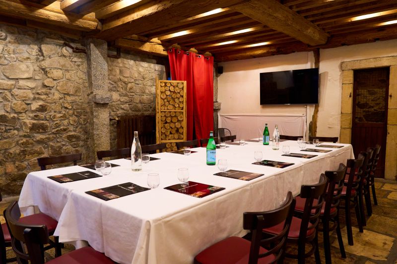 Pour un confort en toutes saisons, vous apprécierez la cheminée en hiver et la climatisation en été. Grenouilles le week-end. Salle privée jusqu’à 35 personnes. Restaurant 60 places. Terrasse ombragée sur la place du village 60 places Climatisation • Restaurant • Parking à proximité.