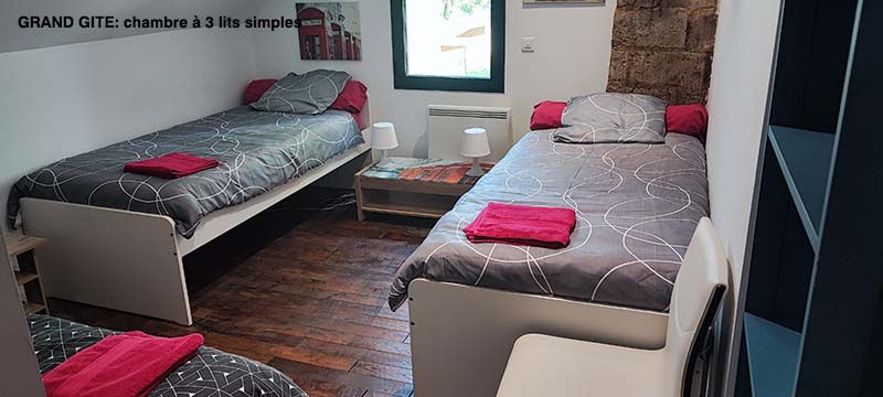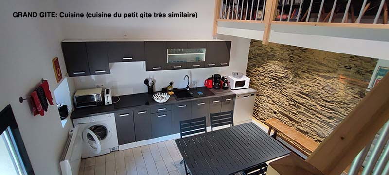 - Grand gite nommé "MICHELINE": Grand séjour, cuisine équipée: four, micro-onde, machine à laver le linge, machine à laver la vaisselle, machine à café (nespresso et filtre), 3 chambres lit double dont une PMR, 1 chambre 3 lits simples, 2 salle de bain, une salle d'eau, 2 WC dont 1 en salle de bain d'étage. 700 m² de terrain à titre privatif.
