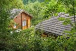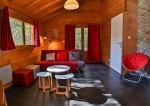 A Sauveterre de Rouergue, Chalet équipé pour 2/3 personnes avec une chambre comprenant 2 lits individuels et un lit gigogne dans le salon, cuisine avec réfrigérateur, mini four et micro ondes, dans un espace 100% nature entre Rodez et Albi.