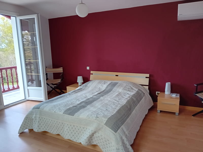 Chambres d'hôtes de 20m² avec lit en 140 cm dans une maison basque à l'étage. La maison est proche de Bayonne, de l'aéroport de Biarritz (15mn), de la gare de Bayonne (10mn) et des deux autoroutes A63 et A64 qui vous permettent de vous déplacer dans le sens Nord Sud et Est Ouest (Pau à 55 mn, Bordeaux à 1h50, l'Espagne à 30mn). Vous disposez d'une chambre chauffée l'hiver, climatisée l'été avec balcon, Wifi, TV, et d'une salle de bain, le wc indépendant se trouve sur le palier. Quand la saison le permet, vous aurez accès à la piscine chauffée et au jardin avec transats.
