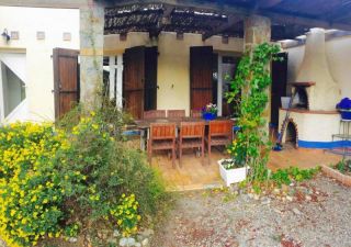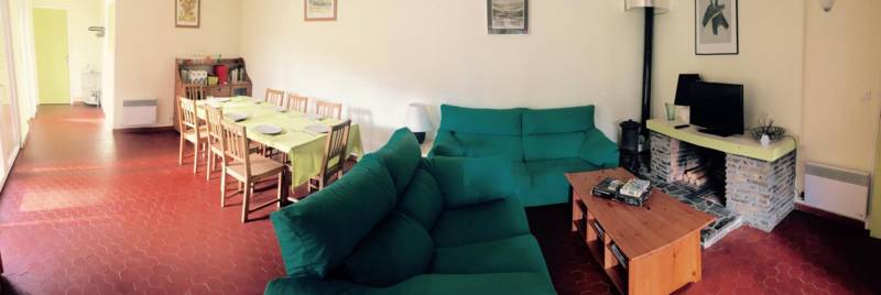 Grande maison contemporaine totalement indépendante avec une très jolie vue sur le massif des Albères et Montesquieu. Grand séjour lumineux (avec poêle à bois) ouvert sur une grande terrasse couverte, cuisine, 3 chambres (1 lit 160 sur 200) (2 lits 90 sur 200) (4 lits gigognes 90 sur 200), salle de bain, wc, salle d'eau (wc). Grand terrain non clos de 3500 m² alentours dont 600 m² arborés et fleuris avec salon de jardin, barbecue et transats. Parking dans la propriété. Sentiers de randonnées au départ du gîte. Plusieurs animaux sont acceptés.