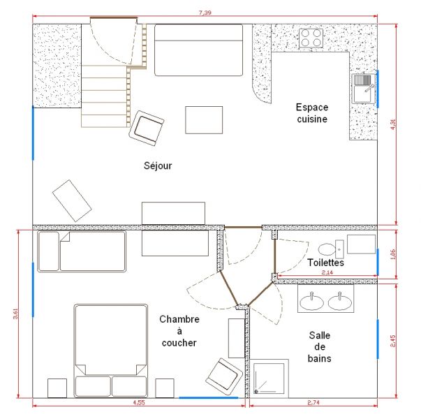 Au rez de chaussez une entrée séparée, la salle de bains et wc (avec sauna), une kitchenette (réfrigérateur, 2 plaques électriques, mini-four, cafetière et bouilloire) et un séjour. A l’étage une chambre à coucher 28 m². Couchage : 1 grand lit pouvant être séparé et possibilité de lit d’appoint. Superficie totale de l’hébergement : 60 m². Cadre rustique. Le séjour donne sur une terrasse et le jardin.TV-Wifi. - Le deuxième "Les Coquelicots"se trouve dans une dépendance de la propriété : il s’agit d’un appartement de 60 m² : un séjour avec cuisine à l’américaine (couchage 2 personnes sur un clic-clac) une chambre à coucher (couchage 1 grand lit 2 pers., 1 lit 1 pers). Une salle de bains et wc séparé. Le tout donne également sur une terrasse et sur le jardin. TV-Wifi.
