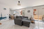 Le salon/salle à manger : un grand canapé, télévision, wifi, bureau, imprimante, livres (à lire sur place !!), table pour 6 personnes, salon de jardin sur la terrasse.