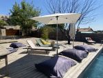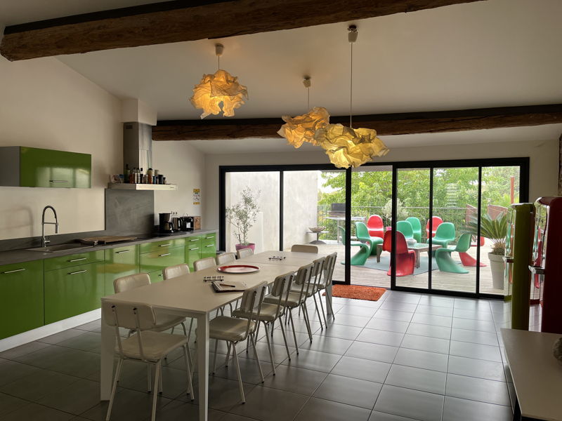A 2mn de l'A9, sortie 27, entre Nimes et Montpellier, Maison entière tout équipée & climatisée pour 12/14 personnes avec piscine privée, baby-foot et ping-pong, 12 lits single et 1 canapé 2 places. Draps fournis, consommable et serviettes à fournir .