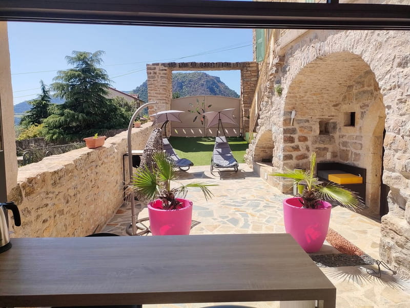- ✔ Salle de bain moderne & WC indépendant ✔ Buanderie ✔ Cuisine ouverte à 100 % sur l’extérieur ✔ Terrasse conviviale avec vue imprenable sur les Gorges du Tarn