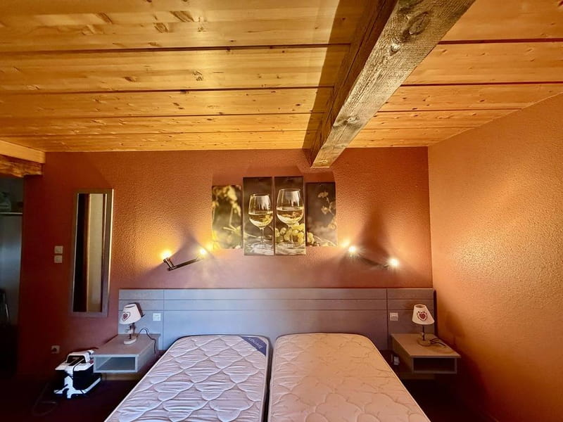 Charmante chambres d’hôtes au style alsacien moderne avec dans chacune une télévision connectée, un coffre-fort, table et fer à repasser, une machine style Nespresso avec dosette thé et café à disposition.