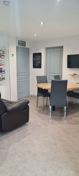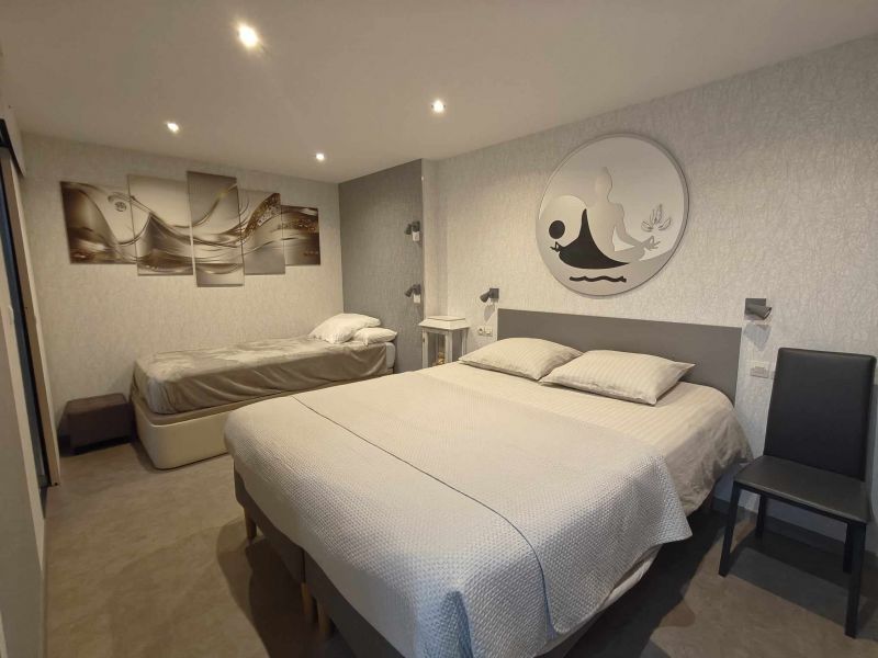 Il se compose : - d'une cuisine équipée avec coin repas, un grand canapé et TV - une chambre avec un lit 160x200 + 1 lit 100x200 (+15€ la nuit pour le lit single) - une chambre avec 1 lit 160x200 - et une salle d'eau pour chaque chambre (douche/wc)