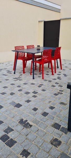 Au rdc : une grande pièce à vivre avec cuisine équipée, coin repas, coin salon, terrasse et jardin équipé d'un barbeque à gaz.