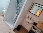 A l'étage : une chambre avec 3 lits simples, nous pouvons en réunir 2 pour faire un grand lit. Une seconde chambre avec 2 lits simples qui peuvent être reunis en grand lit. Une salle de bain avec douche, lavabo et wc.