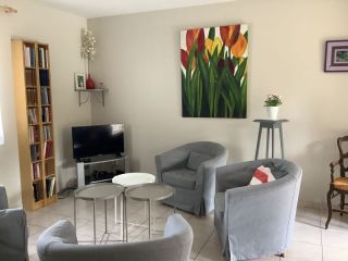 Gîte en RDC dans une maison indépendante pour 4 personnes. Une grande pièce à vivre avec cuisine américaine toute équipée, 2 chambres avec chacune 2 lits, une salle d’eau avec lave-linge, wc indépendant, à l’extérieur, parking fermé et grande terrasse privée avec salon de jardin.