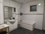 -une salle de bain équipée d'une table à langer, seche serviettes etc...