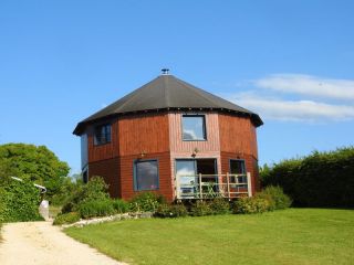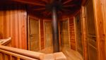 RDC de la Maison Ronde : wc, 1 chambre avec lit double, SDB, cuisine aménagée dans un bel espace de lumière (séjour salon) avec un poêle à bois central, espace salon avec 2 banquettes lits pour 2 personnes (2X 80X190)
