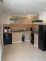 La cuisine : four micro-onde, plaque électrique, réfrigérateur, congélateur, lave-linge séchant, bouilloire, cafetière Senseo.