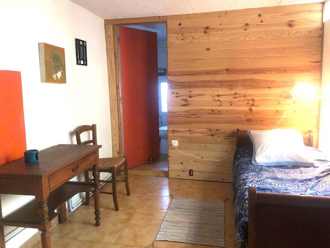 La partie chambre et salle de bains est équipée de radiateurs ( chauffage central), d'un lit gigogne, (à une ou deux place selon votre besoin), une télévision, un placard, un bureau, wifi .