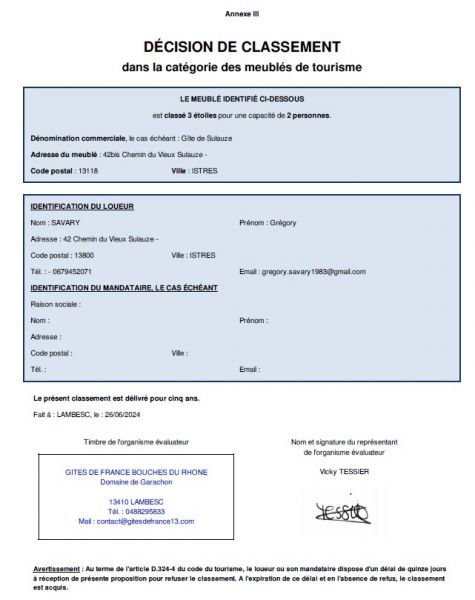 -Le Wifi en illimité et gratuit pour toute la durée du séjour.