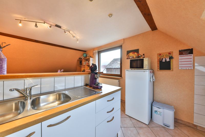 Location en Alsace dans la vallée de Munster dans un petit village de 1450 habitants. Location pour 3 personnes, classée 3 étoiles 4ème sur lit d'appoint si besoin. 2 chambres à coucher, une avec 2 lits accolés pour deux personnes, une avec 1 lit pour une personne, canapé clic-clac, salon, télé, radio, lecteur dvd, documentation, cuisine avec tous les ustensiles nécessaires, micro-ondes, four, gazinière, frigo, freezer, cafetière électrique, Senseo, grille-pain, bouilloire, appareil à raclette plus fondue, douche, machine à laver, table et fer à repasser, chaise haute et lit bébé, chauffage central. Wifi sur demande. Parking clos, espace vert avec salon de jardin et tonnelle, barbecue à côté d'une rivière en été. Location à partir de deux nuits.