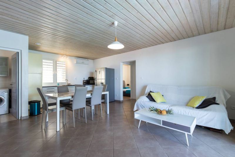 Vous disposerez de deux terrasses couvertes avec vue mer, une devant la maison avec un salon de jardin, une autre dotée d'un coin repas avec un barbecue, d'un terrain de pétanque, d'une table de ping-pong, ainsi que de deux places de parking. Piscine privée sécurisée en accès libre, chauffée durant l'hiver austral, avec transats. Le tarif indiqué comprend les différentes charges (climatisation, linge de maison fourni (hormis les serviettes de plage), …).